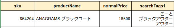 検索タグは1つのSKUに対して最大10件まで入力することができ、フィード上の任意項目として存在するので、以下のようにフィードに列を追加すれば使うことができます。