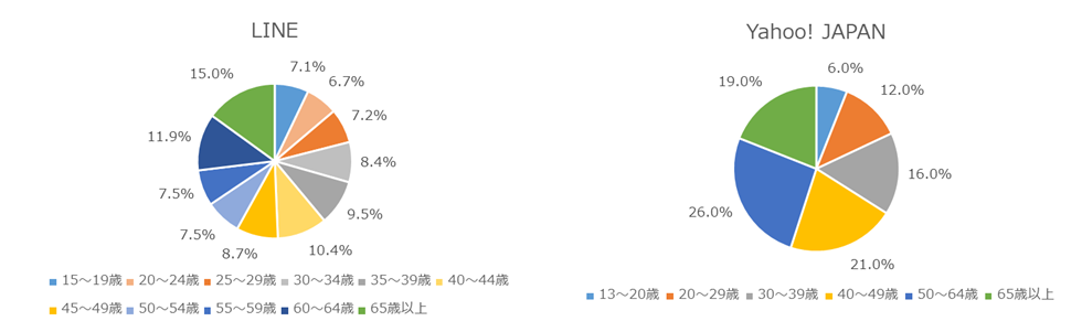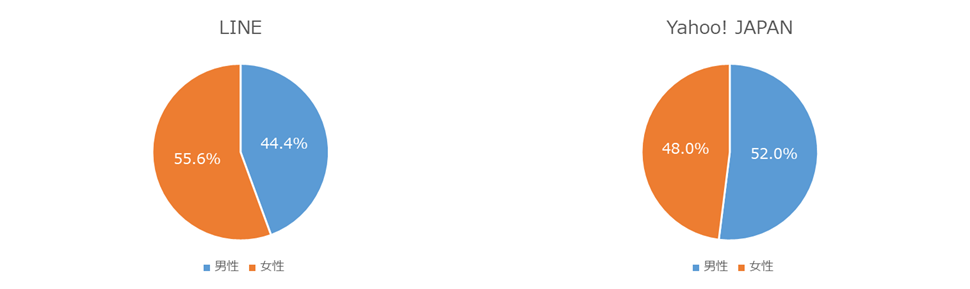 上図はLINEを利用しているユーザーとYahoo! JAPANを利用しているユーザーの性別、年代別の割合です。LINEアプリのユーザー層とYahoo! JAPANのユーザー層には違いがあるため、今までリーチできていなかったであろうユーザーにも商品やサービスを訴求することができるようになります。またLINEとYahoo!JAPANではユーザーの利用シーンや利用時間が異なることも考えられるため、ユーザーが広告を目にする機会の増加も見込まれます。