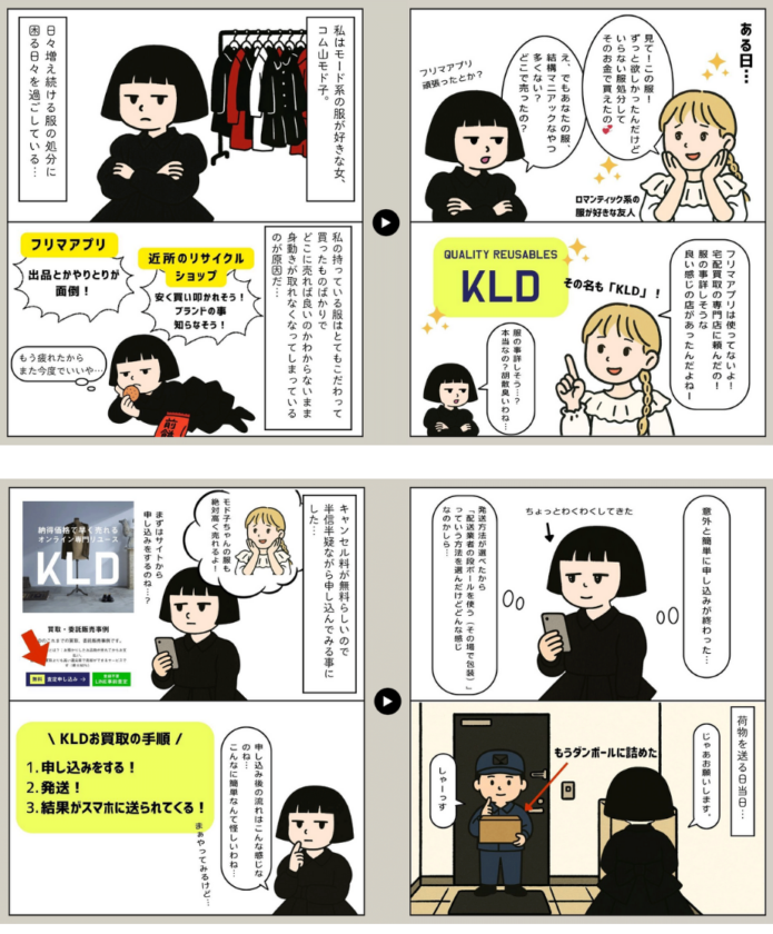 サービス内容を伝える広告ももちろん大切ですが、漫画形式にすることで、ユーザーがKLDの世界観や誠実さをより自然に受け取れるのでは、と思い提案させていただきました。