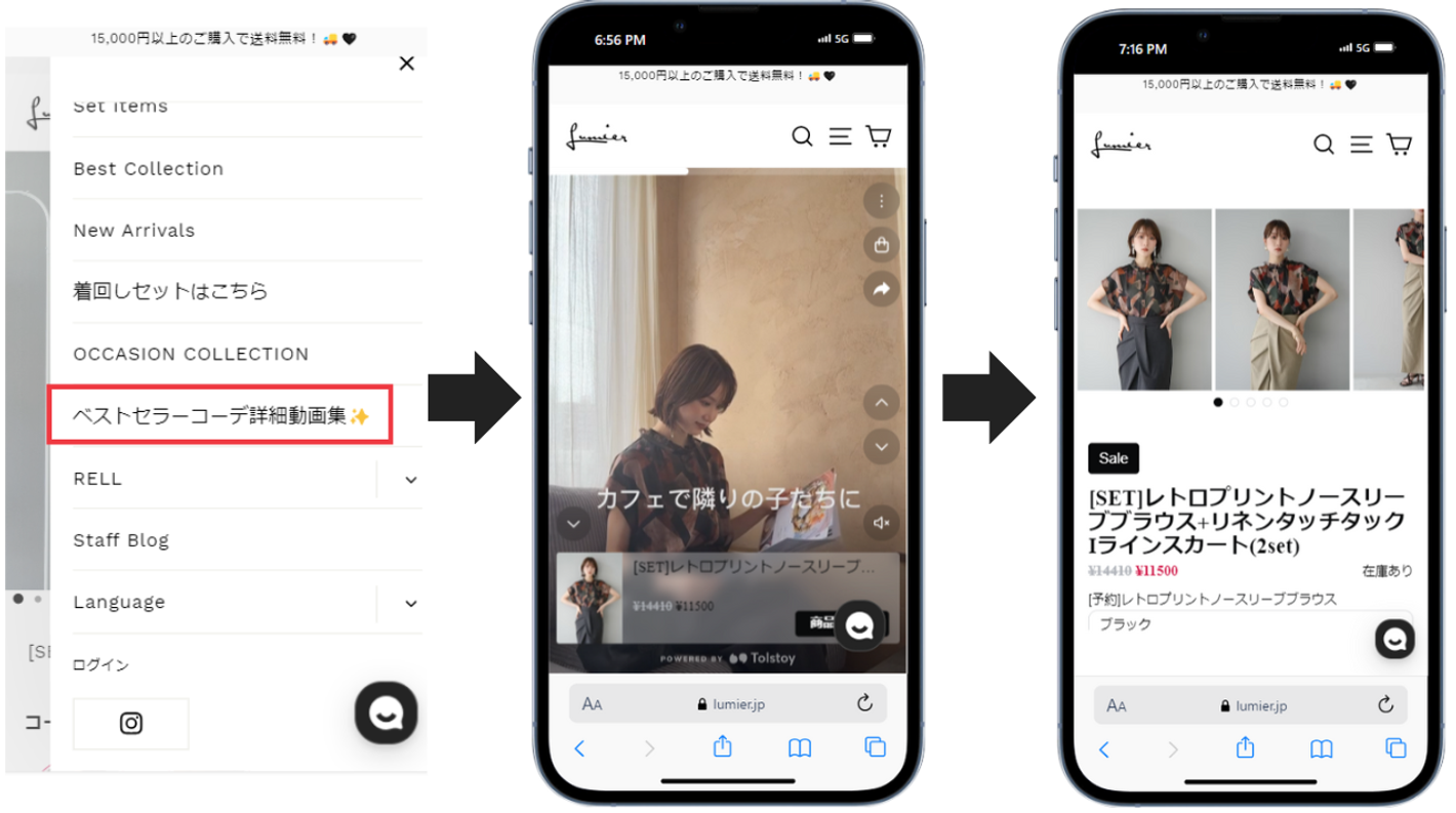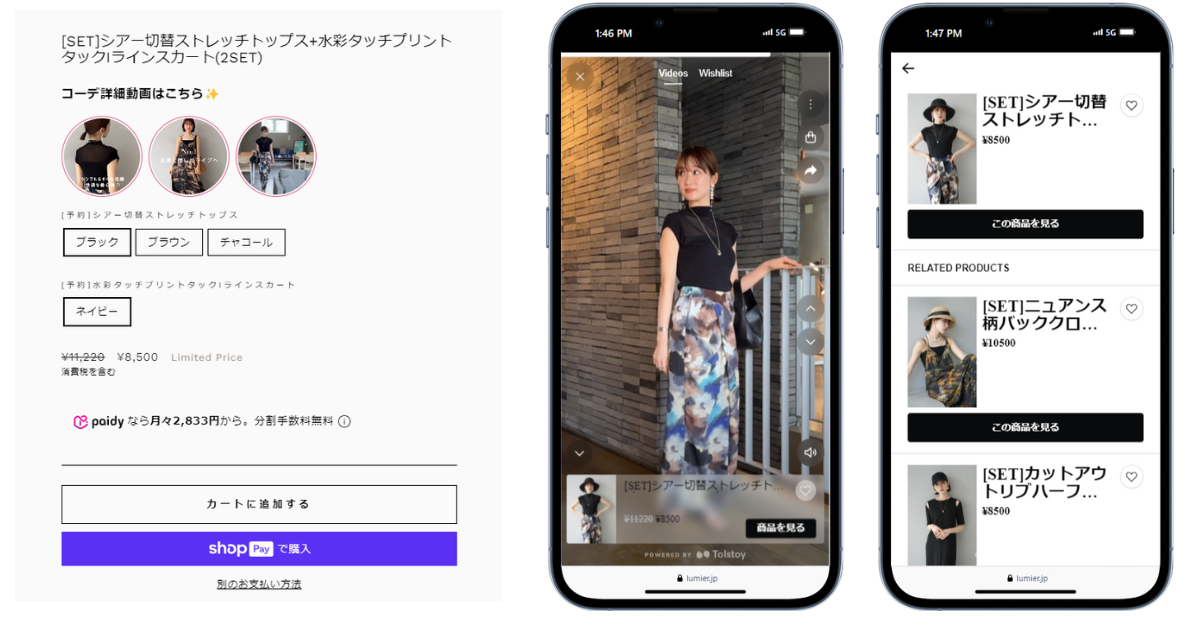 商品ページへの実装に加え、Lumierでは「Tolstoy TV」という機能を活用いただきました。