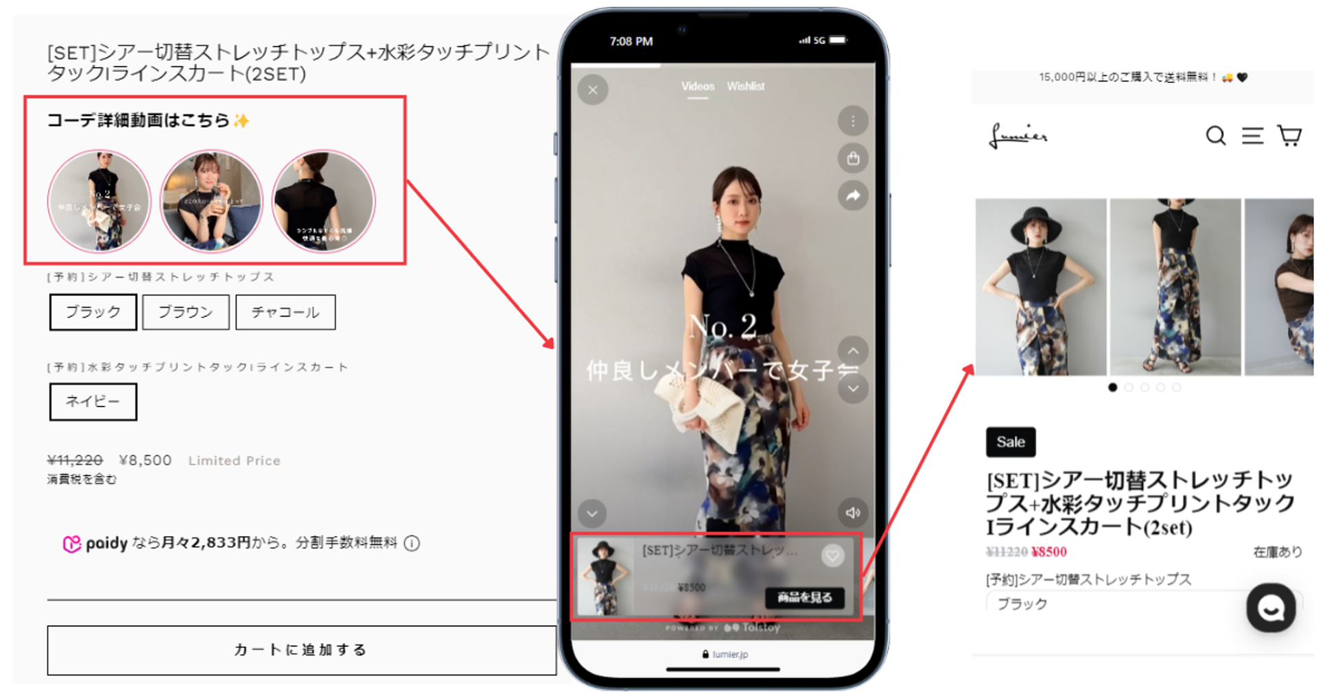 LumierではまずECサイトの商品詳細ページに、動画から商品の購入ができる「ショッパブルビデオ」を導入しました。