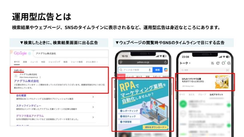 「運用型広告」という言葉は少し難しく聞こえるかもしれませんが、実はみなさんにとって、とても身近な広告です。