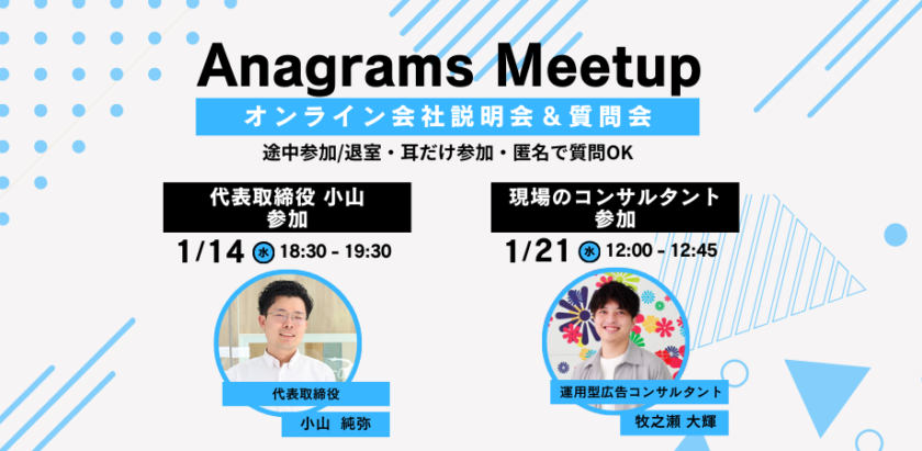 Anagrams Meetup(オンライン会社説明会)でカジュアルにお話しませんか。